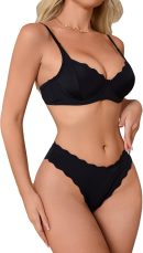 - Feature: Scallop trim, underwire, spaghetti strap, low rise brief, womens underwear, fashionable