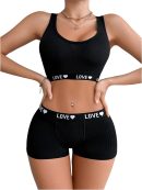 - Feature: 2 piece set, letter heart print, womens lingerie, fashionable